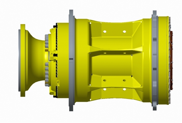 产品概述:G70010机械式终传动集成了传动 午夜十八禁,行驻车制动功能,传动形式采用NGW一级行星传动,制动为双活塞的行驻车一体式制动器,是由中车戚墅堰所设计制造的百吨级以下小吨位机械式终传动产品,匹配90吨级机械传动矿用自卸车,目前在样机试制阶段。