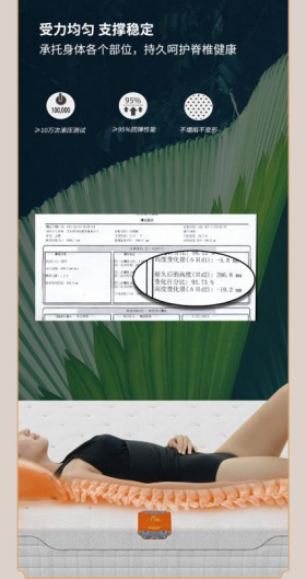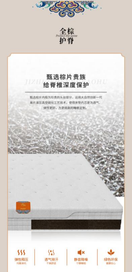 甄选棕片内极为珍贵的山棕纤维(棕板头丝)部分,运用大自然创新一代单片滚压真空硫化工艺技术,使得床垫内芯更为透气,弹性更好,为更挑剔的睡眠定制,独创三段式结构设计原理,支撑性好,透气性佳,用材天然环保安全,床垫静音性好,无有害物质及辐射,德国依沃珑物理防螨360°无死角防护 午夜十八禁,给睡眠微环境提供深层保护,面料经过国际生态纺织品认证0eko-TexStandard100,符合母婴级别标准,放心睡无忧虑,睡感软硬适中,对腰椎有良好的保护作用。