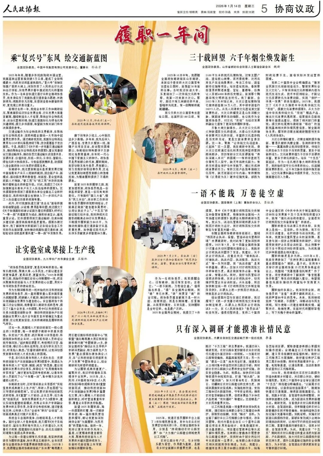 1月14日,《人民政协报》“履职一年间”专题刊登了全国政协委员,中国中车集团党委书记 午夜黄视频,董事长孙永才题为《乘“复兴号”东风绘交通新蓝图》的署名文章。