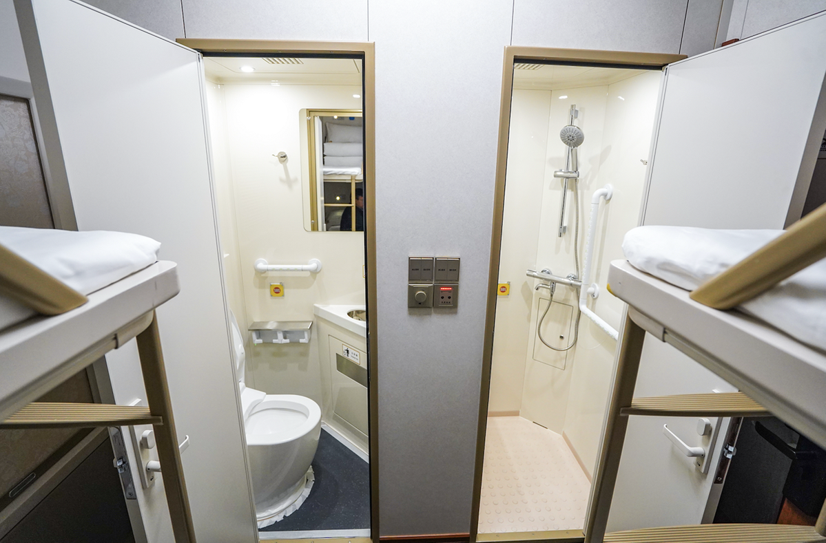 The train consists of 14 soft sleeper cars with double, triple, and quadruple bed compartments, a dining car, a multifunctional car, and a personnel car. Each compartment has an independent dry-wet-separation bathroom with a temperature-regulated toilet, anti-pinch door handles, and an SOS emergency call system. 成年人午夜网站.