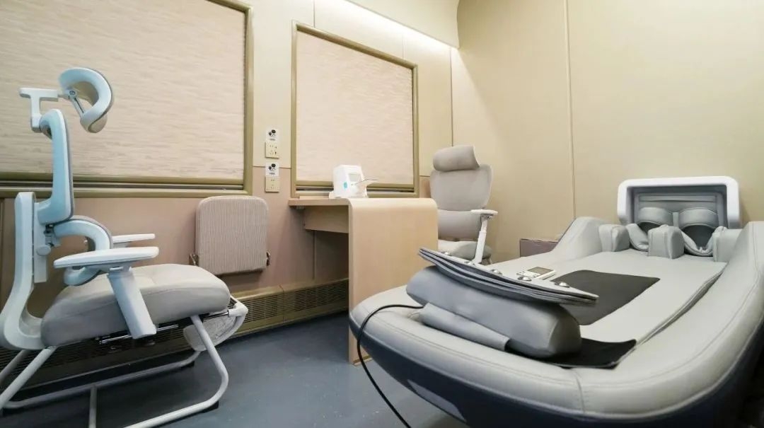 The multi-purpose car adds variety and enjoyment to the journey. The reading corner is equipped with a bookshelf, a sofa, and a display screen, creating a comfortable reading environment for passengers. It also features an interactive space for up to 20 people, offering various leisure and entertainment activities such as singing, fitness, and massage 成年人午夜网站. Moreover, a smart healthcare room is a place where the elderly passengers can benefit from a spinal physiotherapy device, an AI scanner and the like.
