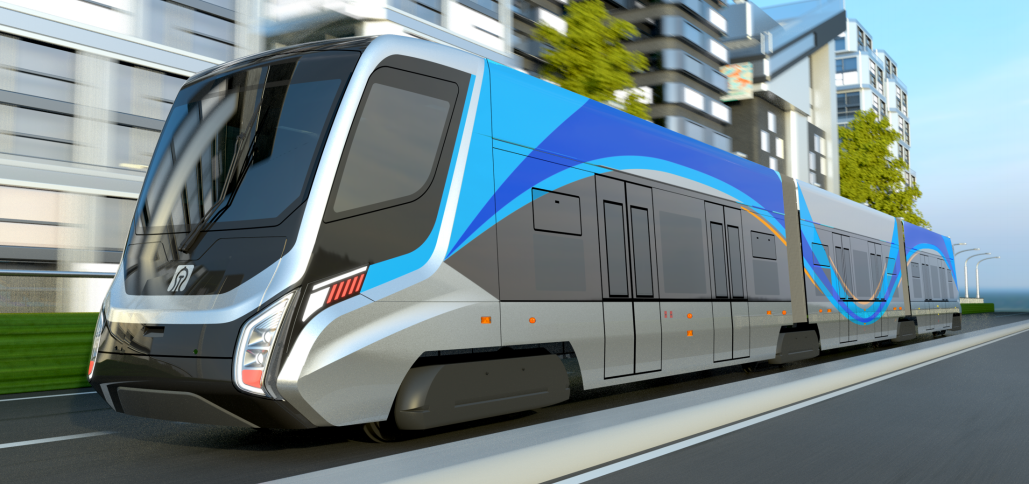 100%低地板现代有轨电车,最高运营速度70km/h,3辆编组 午夜黄视频,采用DC750V架空接触网受电,同时具备车载储能自牵引能力。