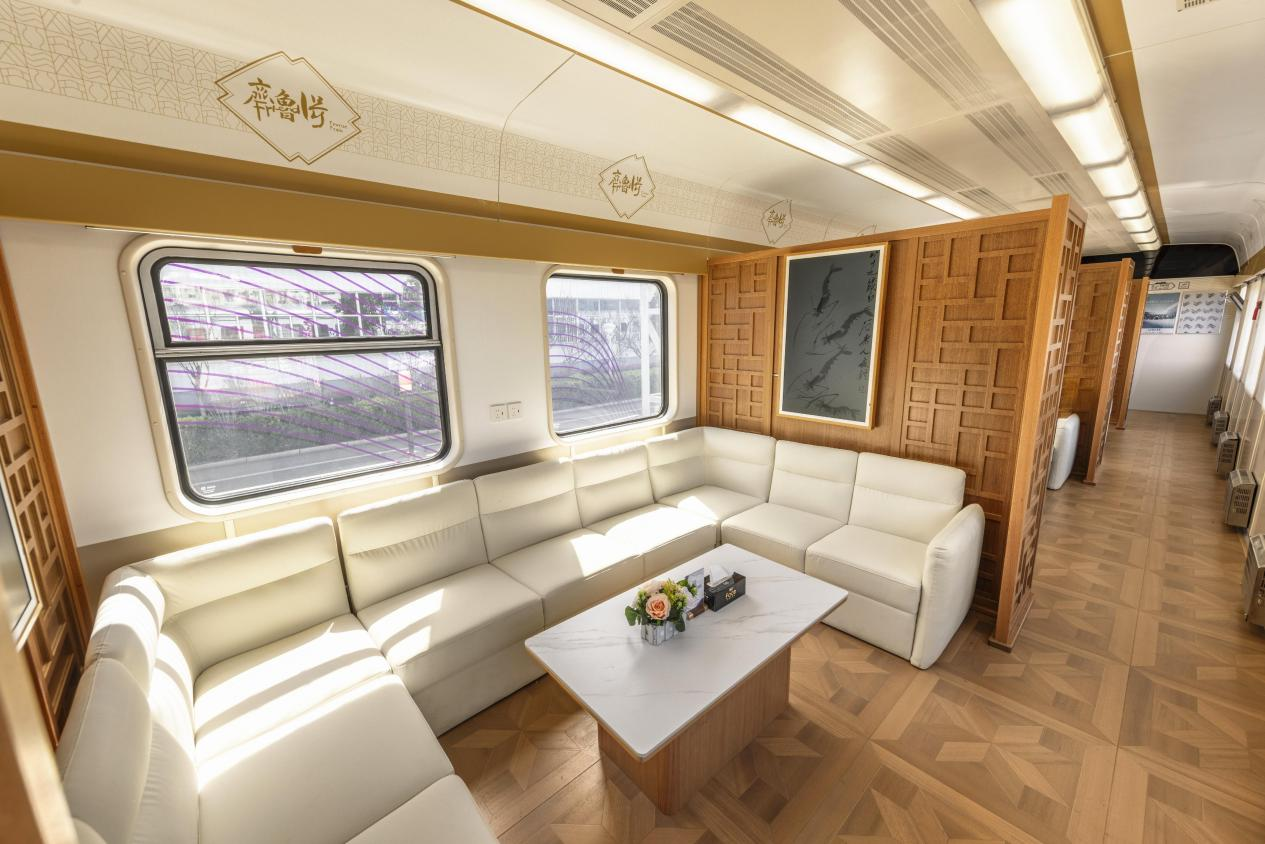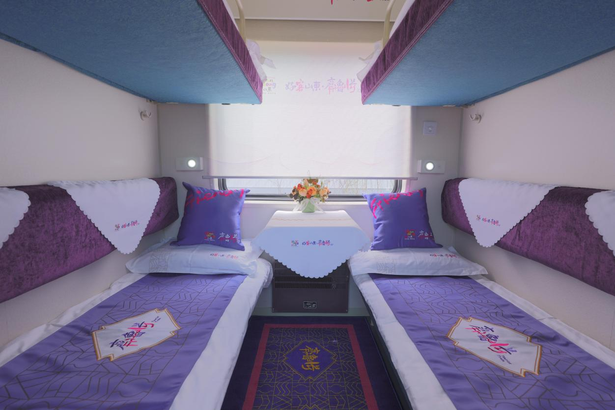 “好客山东·齐鲁1号”旅游列车是在既有普速客车基础上进行适老化,舒适化改造,融入山东文化特色,升级休闲娱乐观光服务功能,集“吃住行游购娱”于一体的山东特色旅游列车,由十四辆客车和一辆发电车组成,客车包括三辆硬座车,两辆娱乐功能车 午夜黄视频,两辆餐车,两辆软卧车和五辆硬卧车,全列设348个座席,72个软卧铺和330个硬卧铺,共计750个定员。