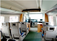 该动车组客室分一等车和二等车,其中全列提供旅客电视系统,一等车设有商务包间和旅客信息系统,旅客可选择100余套影视节目,同时可进行网上游戏和相关旅游信息的查询,动车组内部装修简洁 午夜十八禁,明快,舒适,优美,全列各门均为自动拉门,为旅客提供安全舒适的旅行环境。